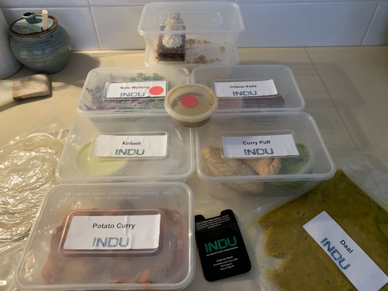 Great selection of interesting dishes from sri lanka. home delivered and devoured immediately.