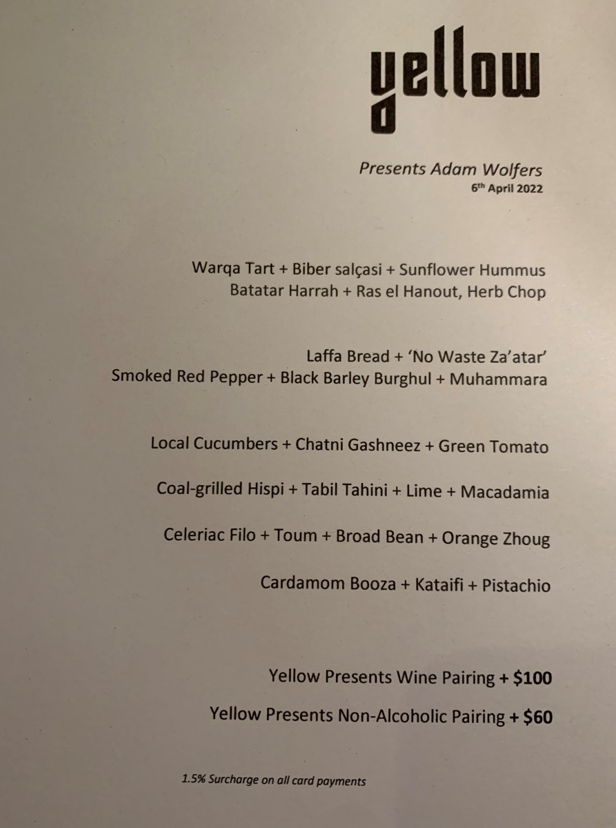 ‘Yellow Presents’ Dinner with Guest Chef: Adam Wolfers (above).